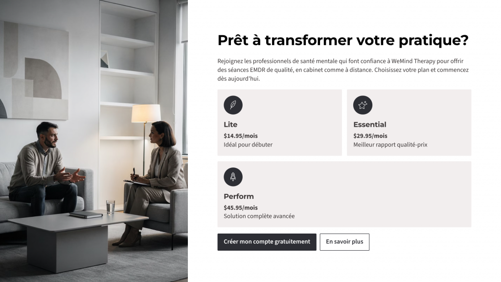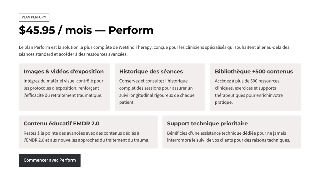 Pour bénéficier de la formation offerte ou réserver une séance individuelle d’onboarding merci de nous transmettre votre inscription à la plateforme sur message@wemindemdr.fr